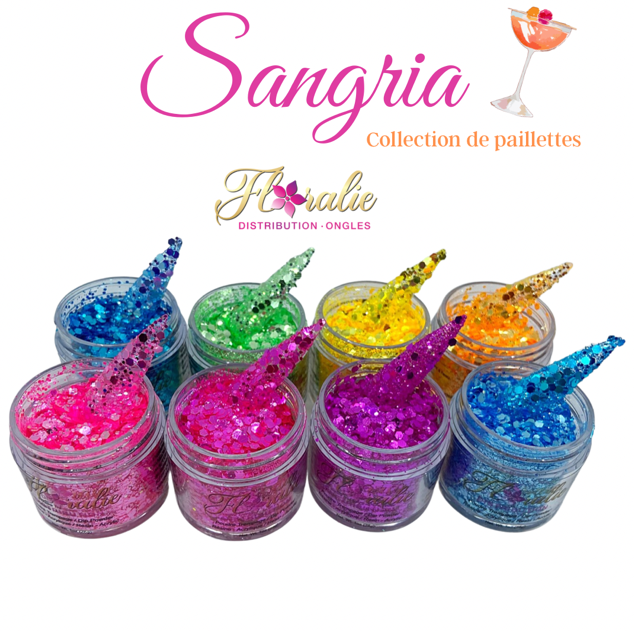 8 couleurs de paillettes pour nail art. Pot de 1 once.