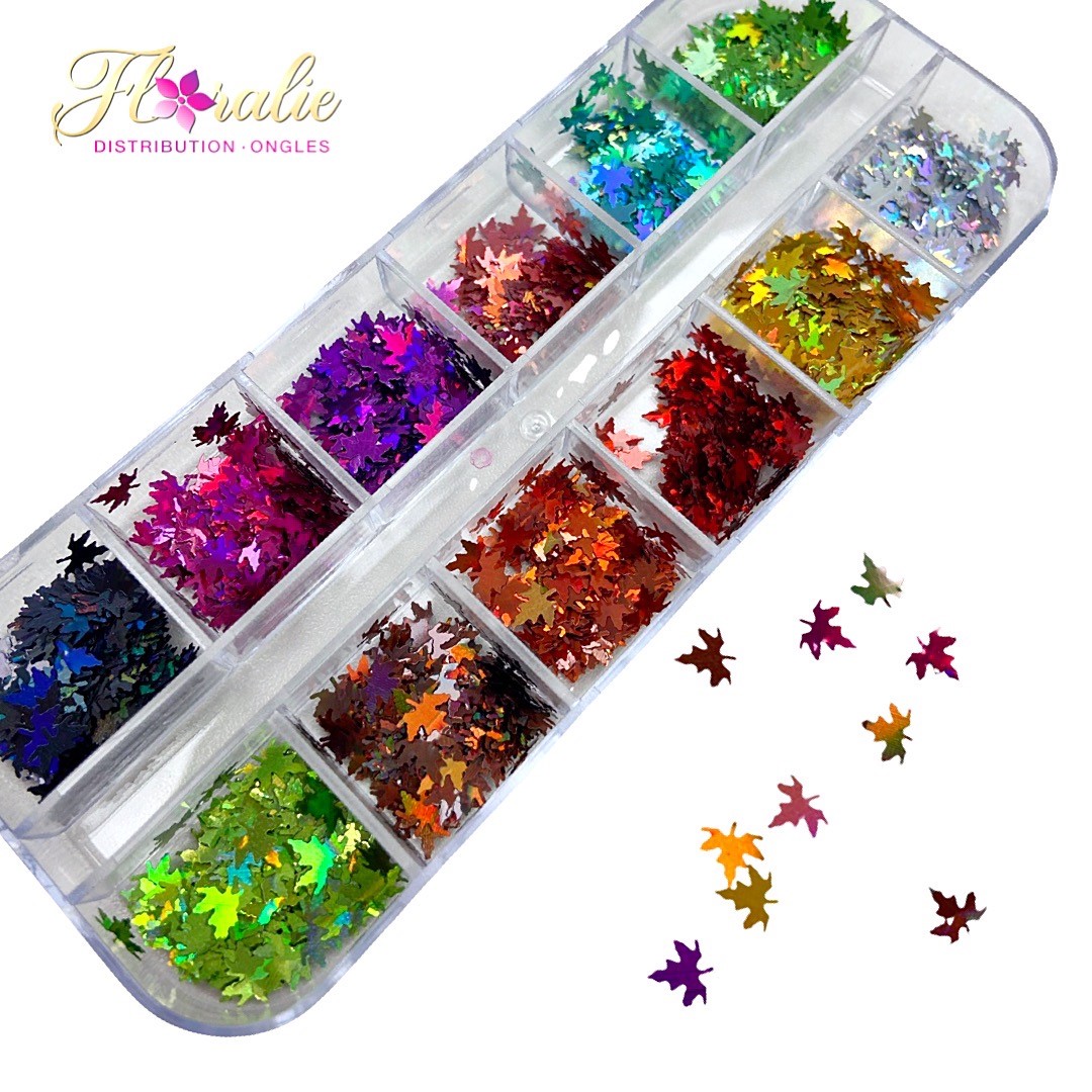 Plusieurs couleurs de paillettes en forme de feuille d’automne.