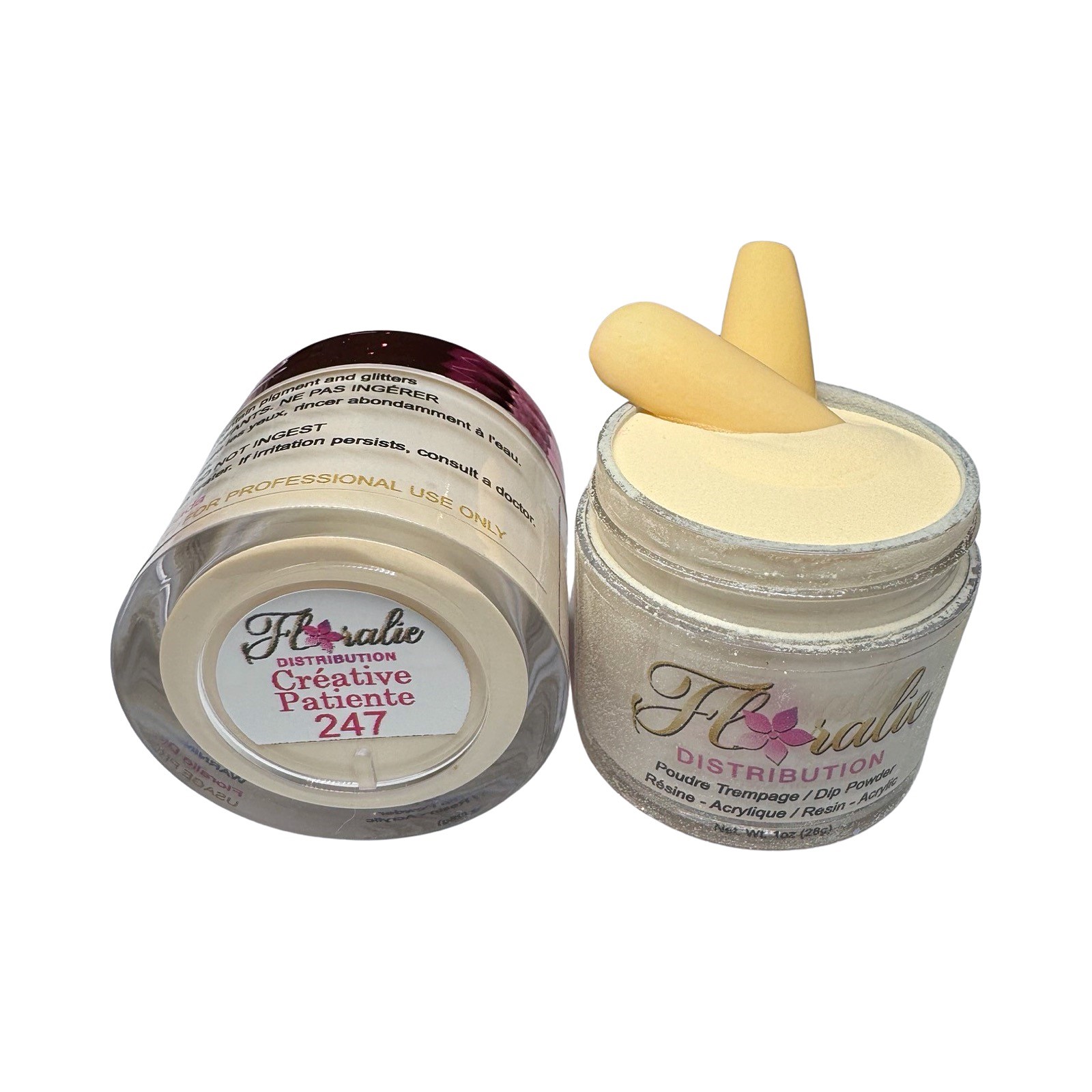 Les poudres Floralie sont compatible avec la résine , l’acrylique et le gel et poudre .